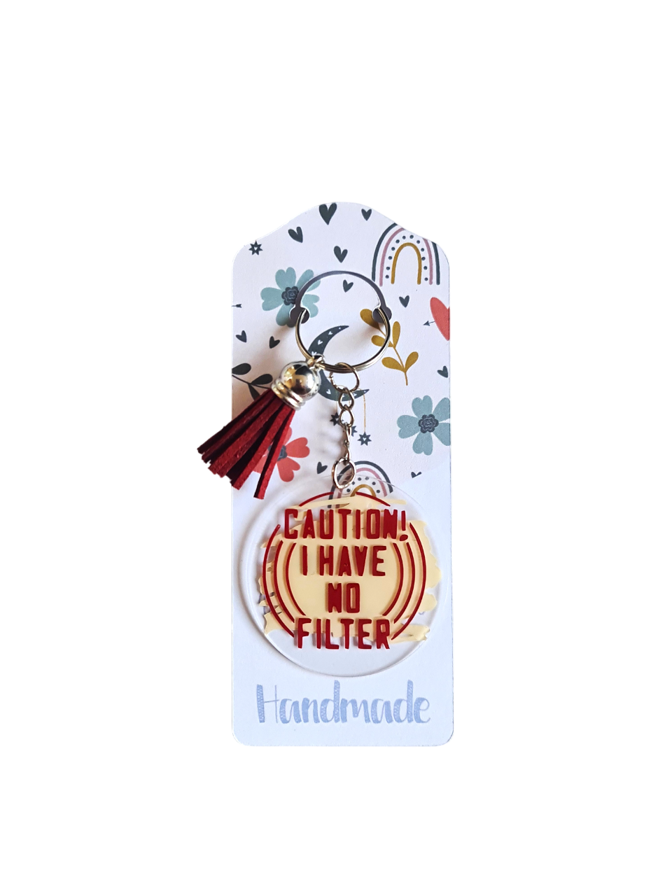 Breloc acrilic "Caution I Have No Filter"
