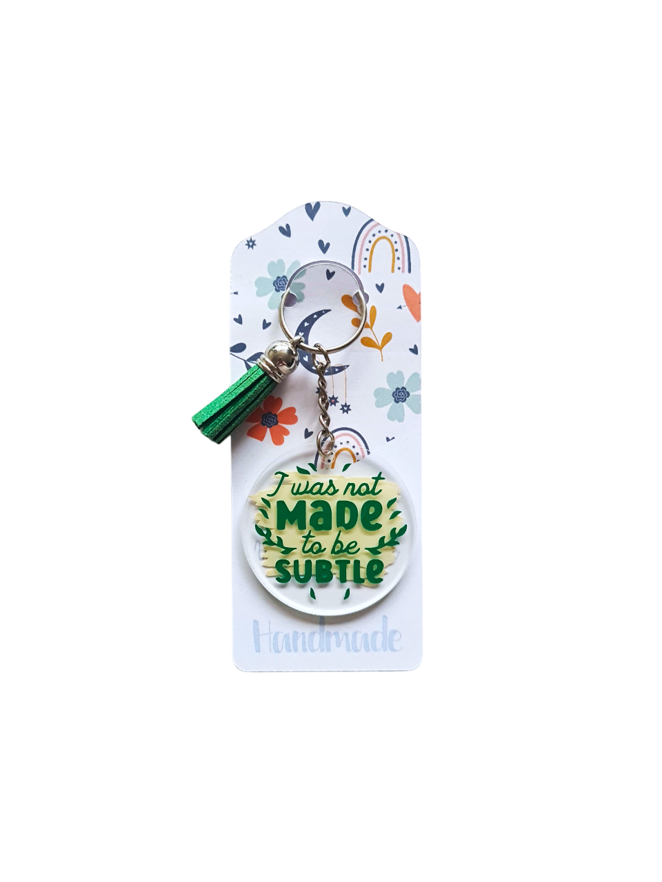 Evidențiază-ți stilul și curajul cu brelocul „Was Not Made To Be Subtle”! Comandă-l acum și bucură-te de un accesoriu handmade autentic și plin de farmec.